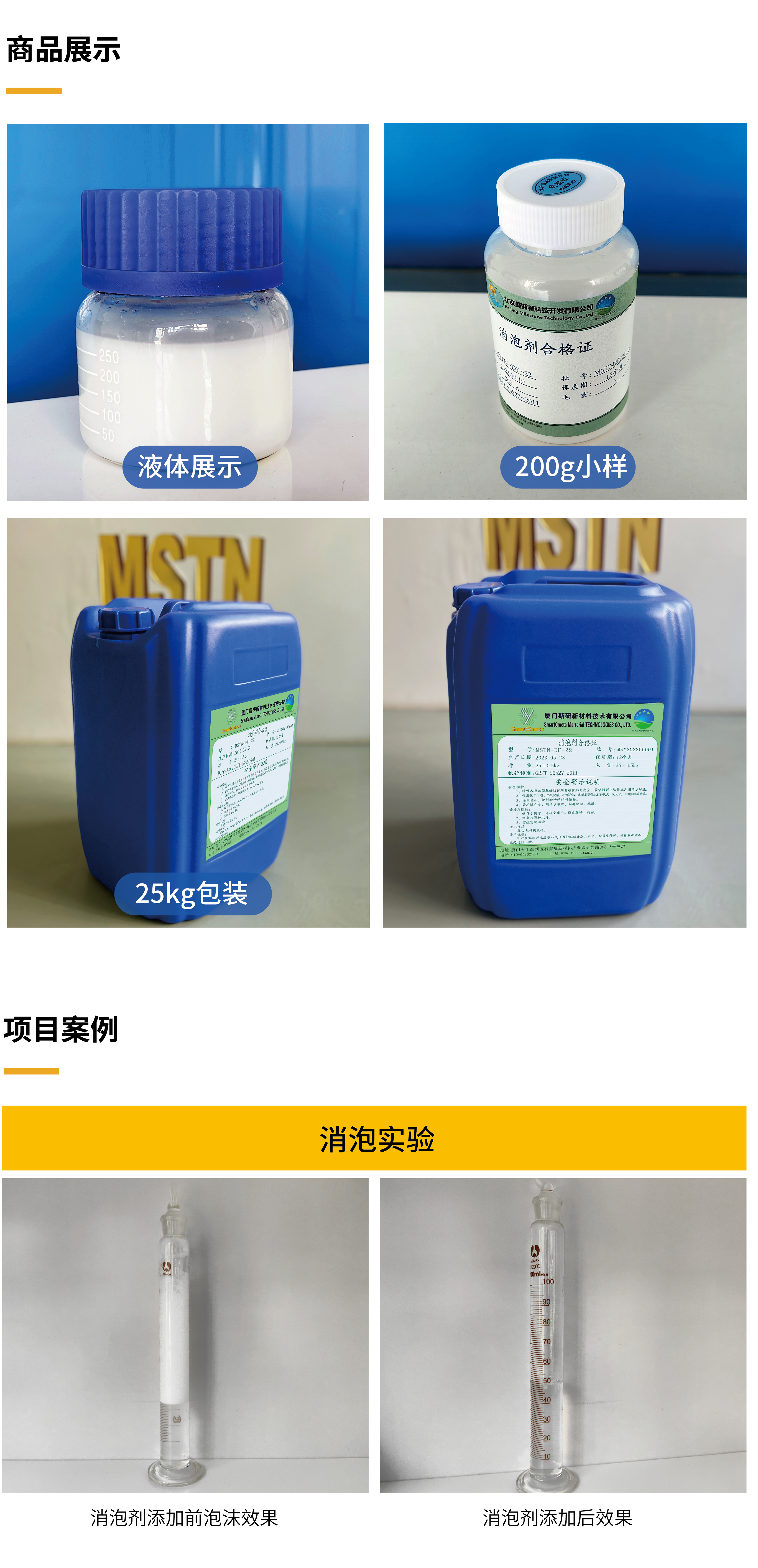 消泡能力强,使用极少量时就能有效消除泡沫,且泡速度快;
