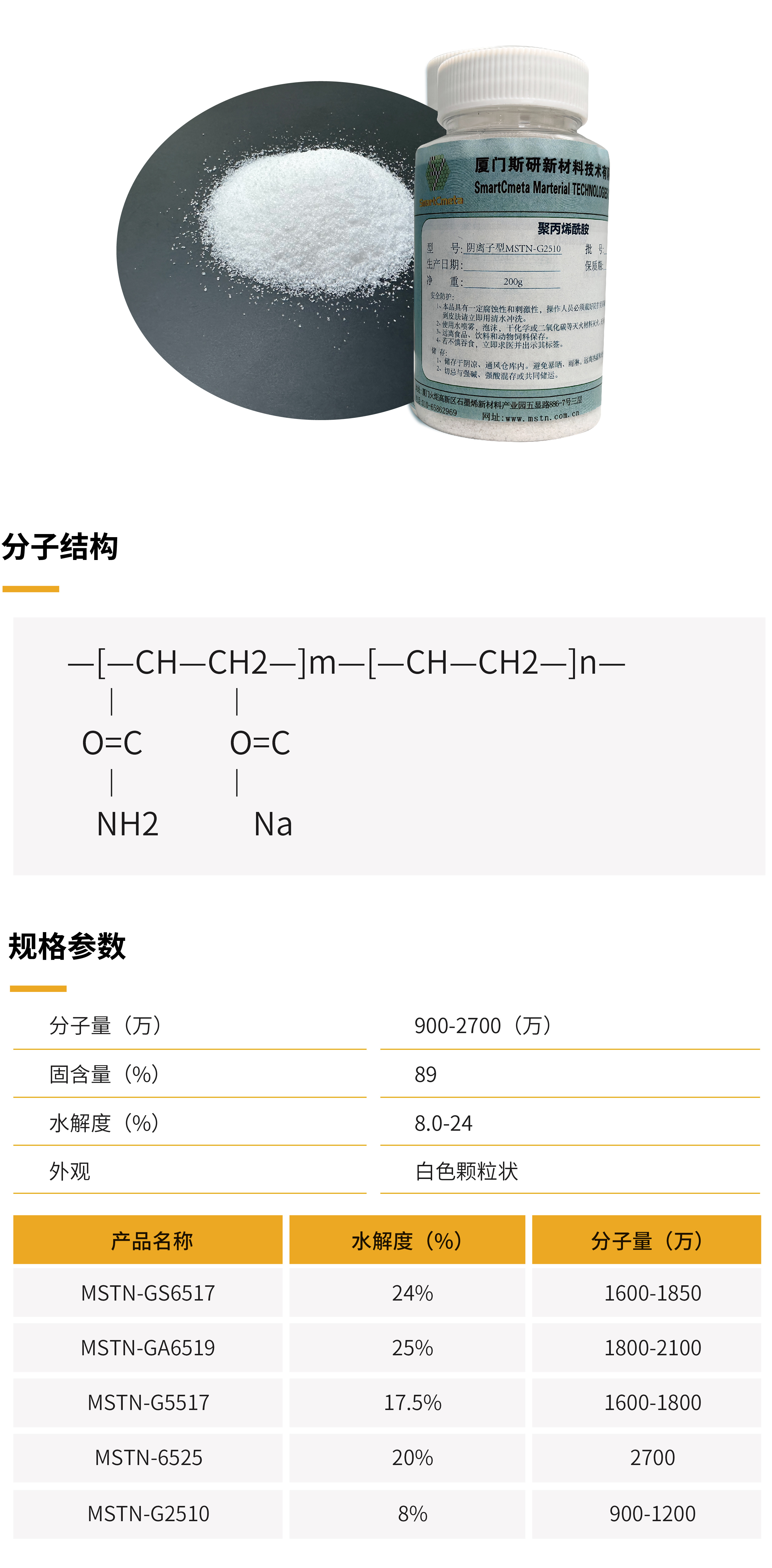 阴离子聚丙烯酰胺是由丙烯酰胺与中和后的丙烯酸共聚而成的线型高分子化合物,由于它具有多种活泼的基团,可与许多物质亲和、吸附形成氢键。