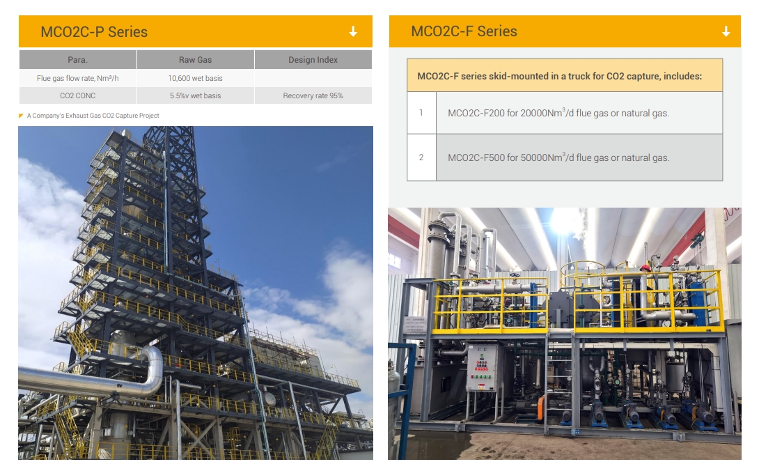 MSTN developed two series of CO2 capture technologies, M·CO2C-F series and M·CO2C-P series.