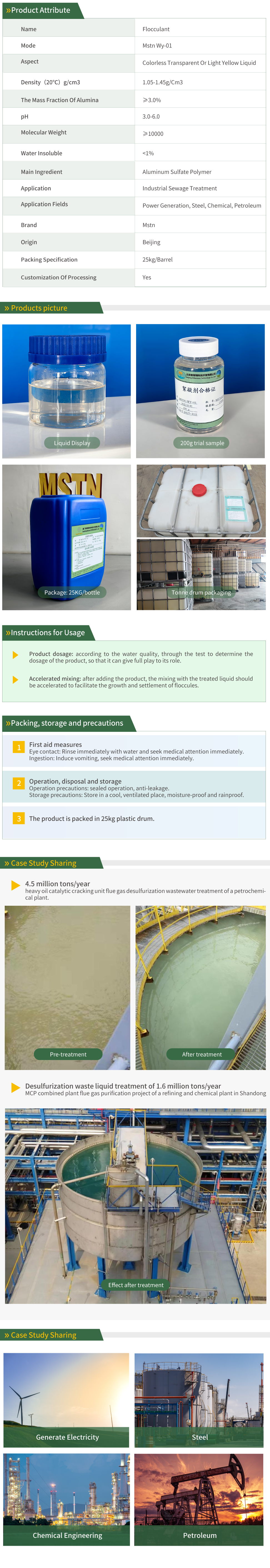 MSTN-WY special flocculant is a special composite flocculant for catalytic FGD wastewater treatment, targeting micron particles in wastewater. Using this flocculant, the FGD wastewater can be treated rapidly and efficiently at low cost.