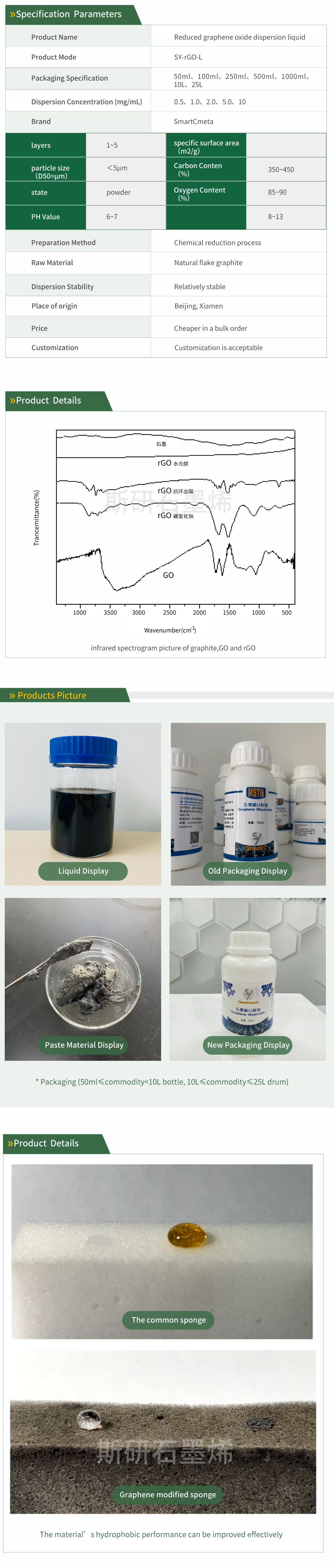 - rGO dispersion liquid(with chemical reduction process) still keep a little oxygen-containing functional groups,the properties are more active then GNP(graphene produced by physical method), will be more easier to graft mod- ification then composite with other materials. rGO products can be customized according to different reduction methods and reducing agents.
