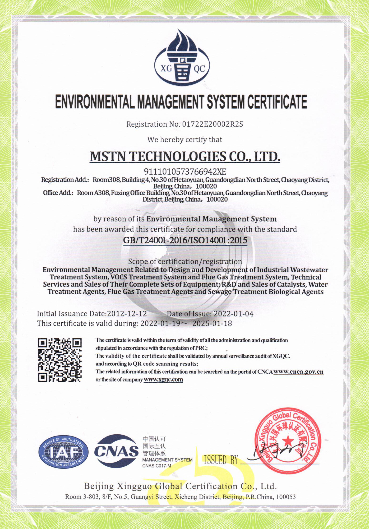 MSTN TECHNOLOGIES CO., LTD. has been committed to environmental governance since 2004, and has successively obtained certifications including National High-tech Enterprise, Specialized and Sophisticated SMEs, Beijing Intellectual Property Pilot, Beijing Gazelle Enterprise, etc.