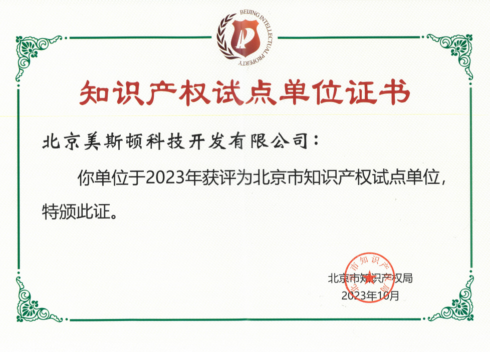 Recently, MSTN TECHNOLOGIES CO., LTD. has been awarded the "2023 Beijing Intellectual Property Pilot Unit Certificate". The acquisition of this honor is a high recognition of MSTN's years of accumulation in technological innovation and intellectual property protection, and also marks a new step for the company in intellectual property work.