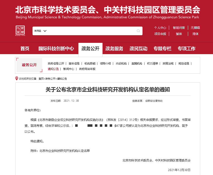 2021年12月30日,北京市科学技术委员会、中关村科技园区管理委员会公布了《北京市企业科技研究开发机构认定名单》,北京美斯顿研发中心即北京美斯顿科技开发有限公司通州分公司接连通过了形式审查、书面审查、现场考察和综合评审,科研实力、科技创新能力再获认可,被认定为“北京市企业科技研究开发机构”。
