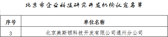 喜讯:北京美斯顿公司通过“北京市企业科技研究开发机构”认定