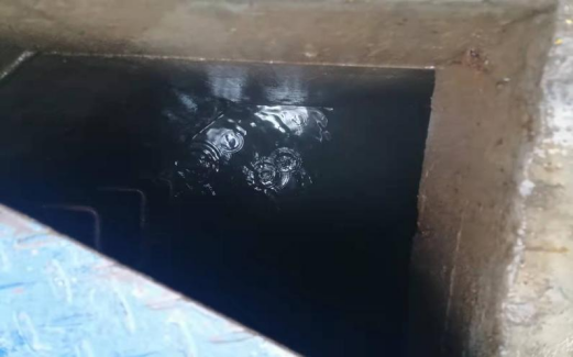③ 案例图片:设备使用前现场污油池如图所示,污油池内视觉可见水面有油膜及水面颜色呈黑色,且水面不透光,水池内有严重的刺鼻气味。