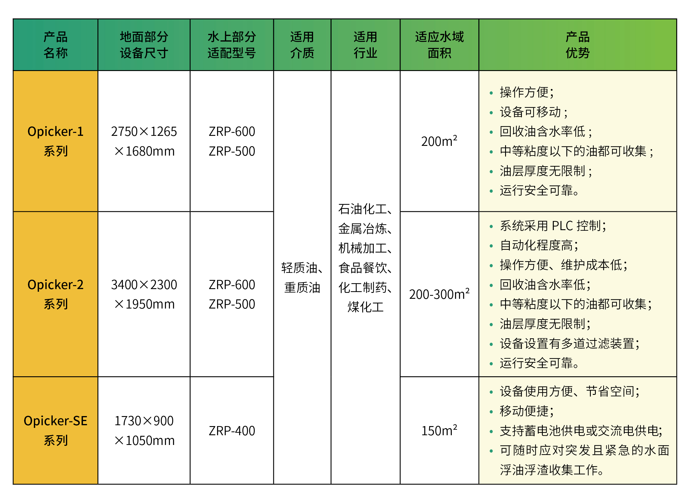 为了提高收油效率,减少使用维护周期,降低使用维护成本,实现高效率、自动化的浮油、浮污收集回收,我公司研发了3个系列的高效浮油收集装置,主要有Opicker-1系列、Opicker-2系列、Opicker-SE系列,可适用于各种工况,满足不同业主的使用需求。