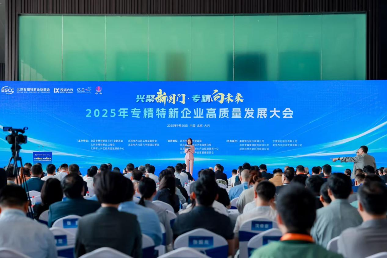 9月20日,以“兴聚新国门,专精向未来”为主题的2025年专精特新企业高质量发展大会在北京市大兴区中建之星成功举行。大会由北京市工商业联合会指导,北京专精特新企业商会、大兴区投资促进服务中心、大兴区工商业联合会、大兴区兴丰街道办事处联合主办,汇聚全国顶尖专精特新企业及“小巨人”企业代表、知名专家学者等500余人,共商发展大计,共绘合作蓝图,共同打造了一个推动产业与资源融合、区域与企业共赢的高能级平台。